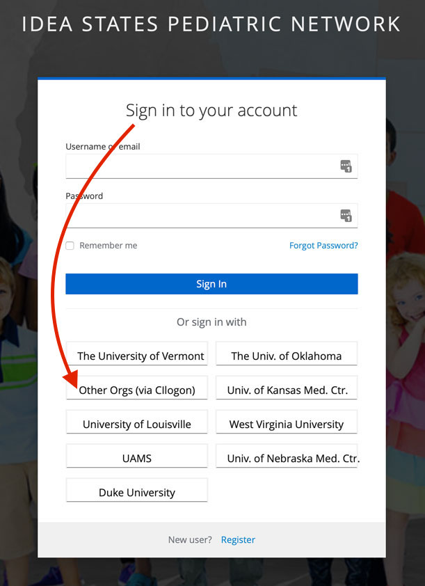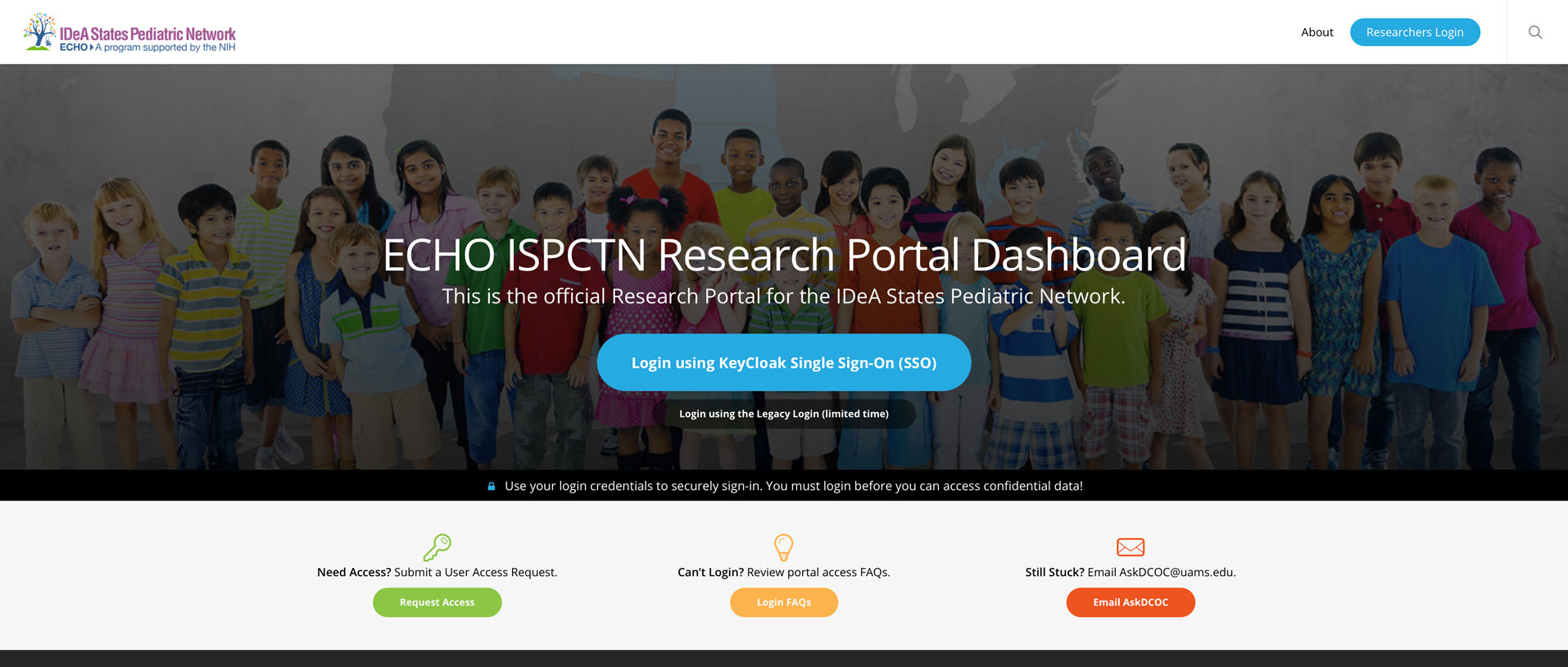 To login using KeyCloak Single Sign-On (SSO), first navigate to the ISPCTN Portal SSO page: https://ispctn.uams.edu/researchers/login