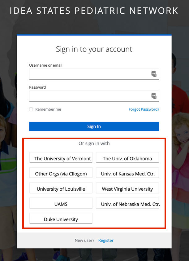 You will receive an email notification once you have been granted access. This email will share instructions on how you can sign into the portal. Look for your institution’s logo in the sign-in process (see screenshot below), select your institution and sign-in using your institutional credentials. If you do NOT see your institution, please choose “All Other Institutions” and enter the credentials we provided you in the approval email you received.